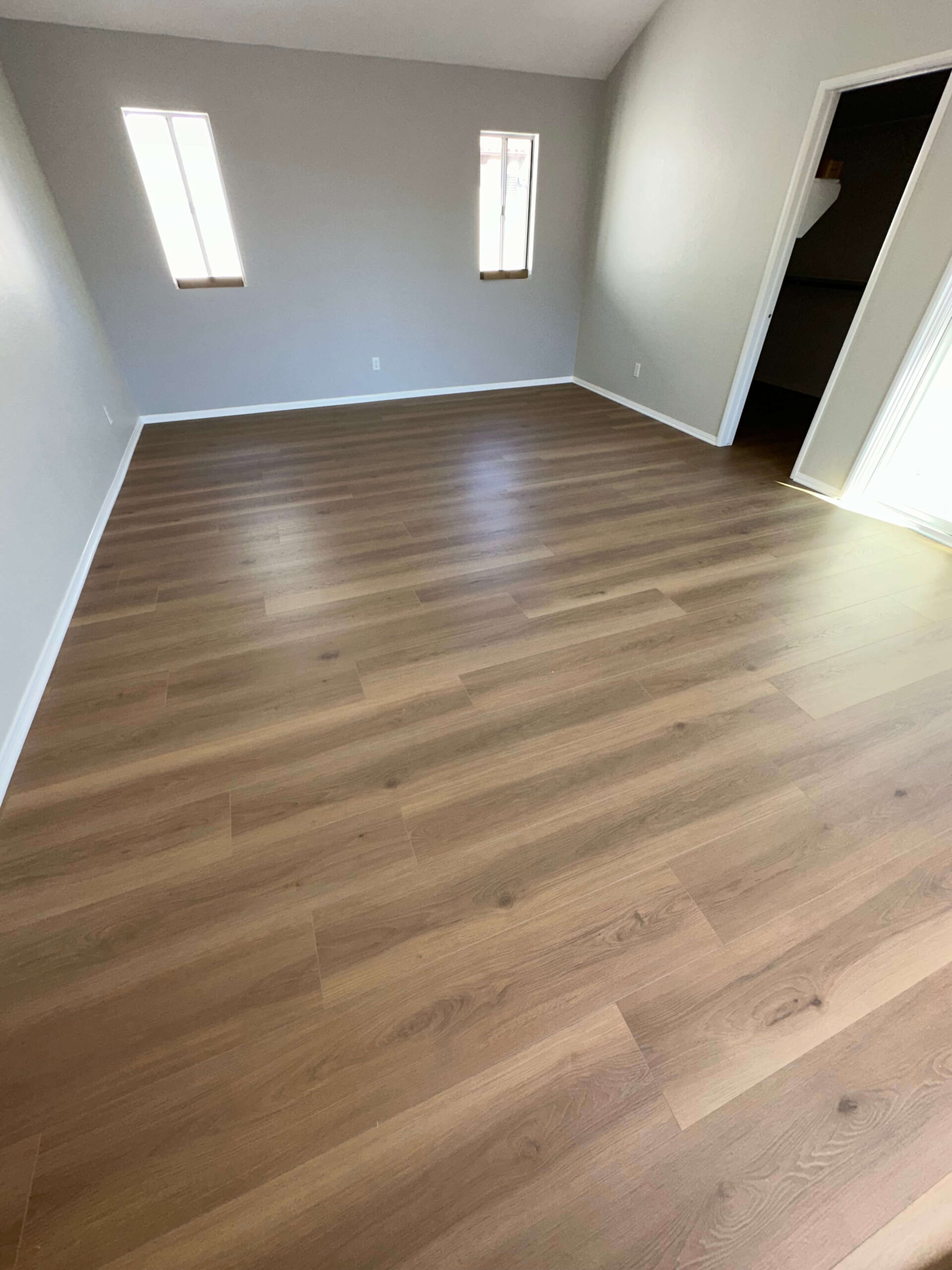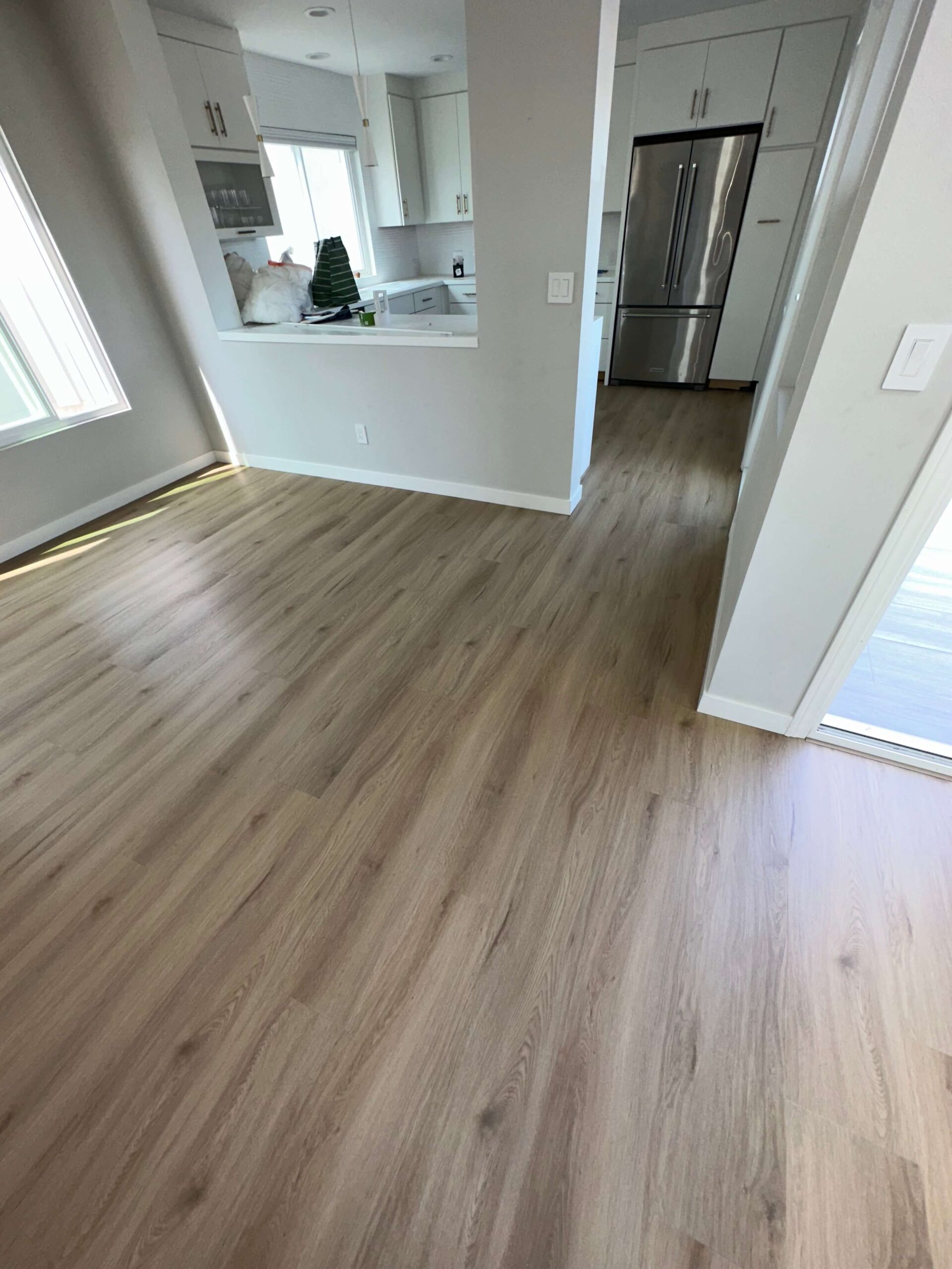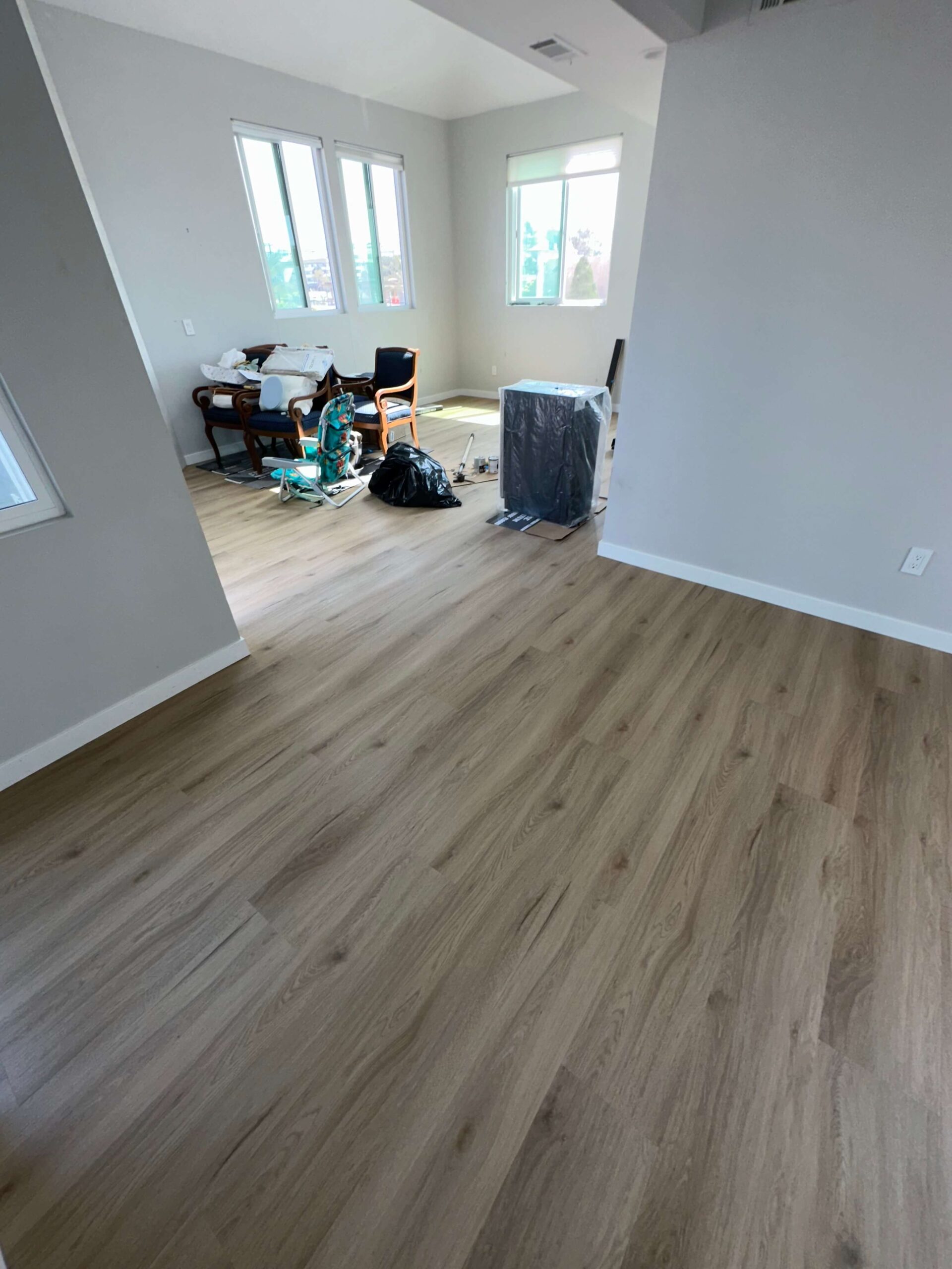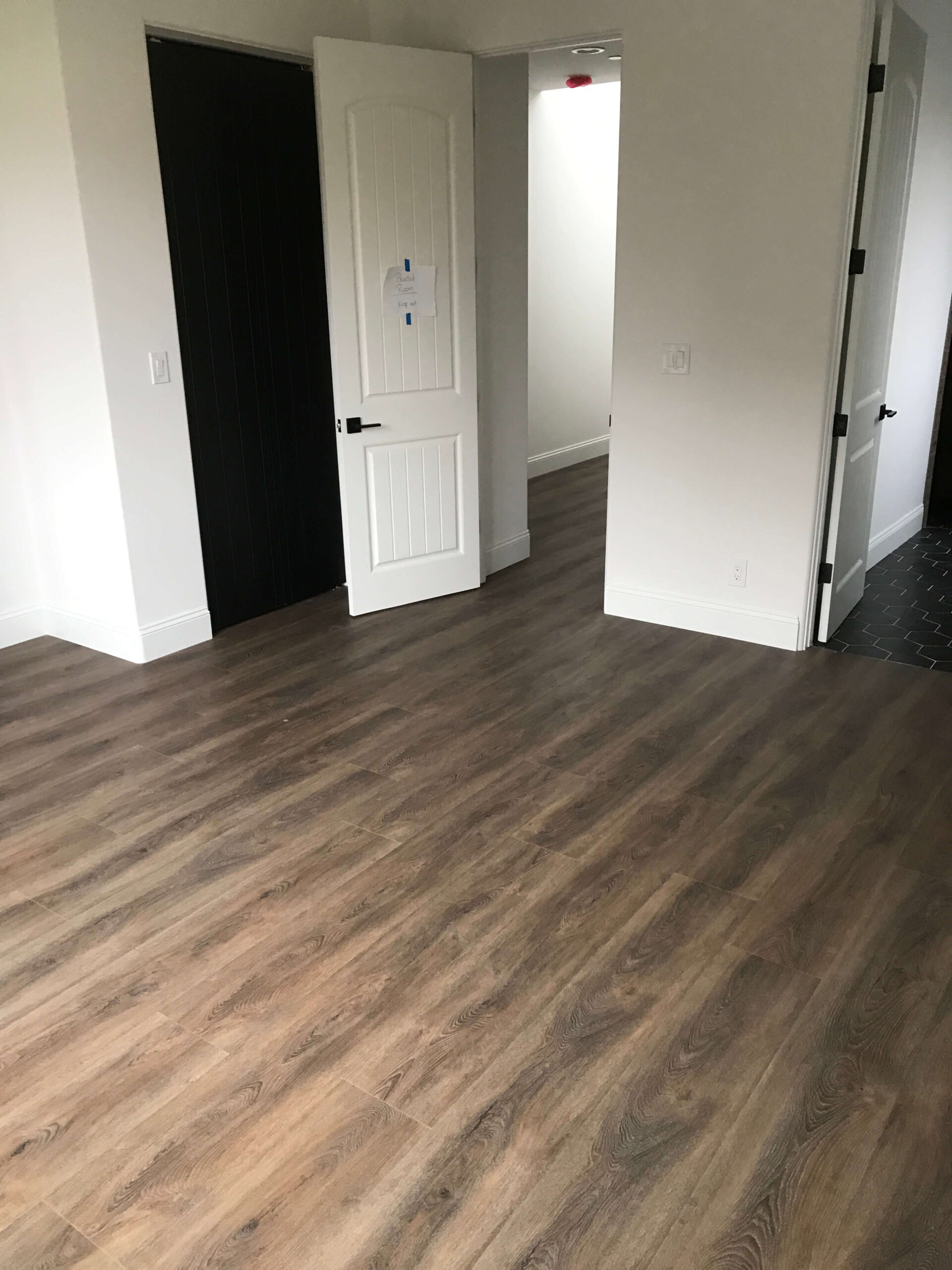 Vinyl flooring is a highly durable and waterproof option for those seeking wood-like aesthetics. There are two main types of vinyl flooring: SPC (Stone Plastic Composite) and LVP (Luxury Vinyl Plank). SPC vinyl flooring is constructed with a stone-plastic composite core, making it incredibly resilient and resistant to impacts, scratches, and moisture. It consists of multiple layers, including a wear layer, a printed design layer, and a backing layer, all topped with a protective finish. SPC vinyl is renowned for its exceptional durability and water resistance, making it suitable for high-traffic areas and spaces prone to moisture, such as kitchens and bathrooms.
